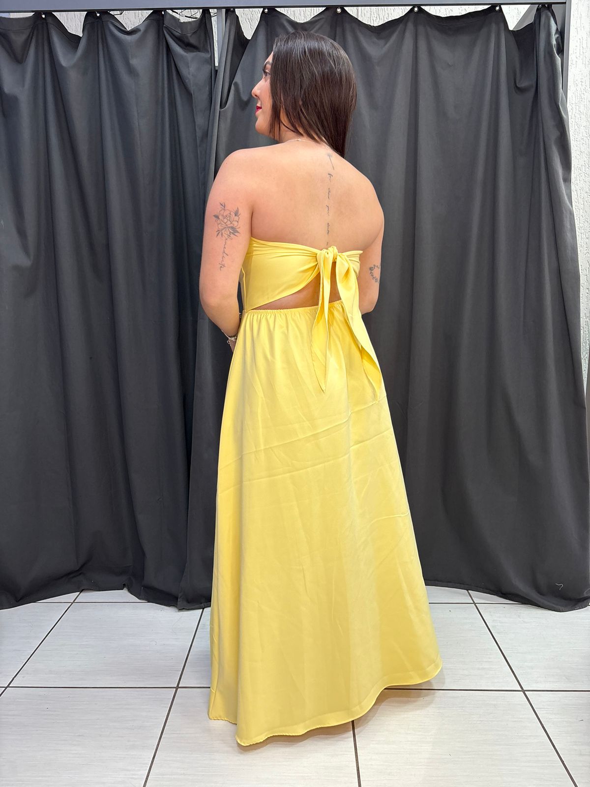 Vestido Longo com Amarração nas Costas – Tamanho Único (36 ao 42) O vestido longo é perfeito para quem busca elegância com um toque de sensualidade. Confeccionado em tecido leve e confortável, ele possui busto estruturado e caimento soltinho, trazendo movimento e delicadeza ao look.